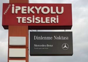 Türkiye’de yıllardır kamyon üretimi yapan Mercedes-Benz Türk, kamyon şoförlerine verdiği değeri bir kez daha somut bir projeyle gözler önüne serdi. Şirket, kamyon şoförlerinin mola zamanlarında rahat ve huzurlu bir ortamda dinlenebilmeleri için geliştirdiği Mercedes-Benz Dinlenme Noktası’nı tüm Türkiye’ye taşımaya kararlı. İpekyolu Dinlenme Tesisleri’yle işbirliği sonucu Adana Pozantı bölgesinde oluşturulan dinlenme noktası bu defa hem kapalı, hem açık alanda hizmet verecek şekilde kurgulandı. Sohbet köşeleri, 7/24 TV yayını ve spor karşılaşmalarını izleme imkânı, ücretsiz internet cafe, şarj üniteleri ve çay ikramının bulunduğu “Mercedes-Benz Dinlenme Noktası”nda verilen hizmetlerin tamamı, tesisi ziyaret eden kamyon şoförlerine Mercedes-Benz Türk tarafından ücretsiz olarak sunuluyor.