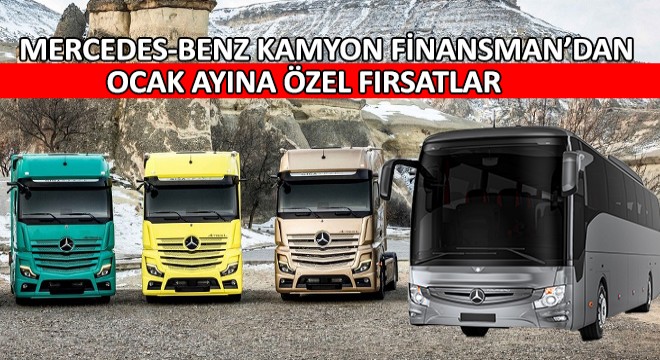 Mercedes-Benz Kamyon Finansman, Mercedes-Benz çekici/inşaat ve kargo kamyonları ile Mercedes-Benz otobüslerine yönelik Ocak ayına özel kampanyalar düzenliyor.