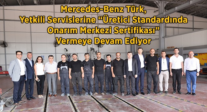 Mercedes-Benz Türk, müşterilerinin satış ve satış sonrasındaki beklentilerini karşılayarak ihtiyaçlarına yönelik en doğru hizmetleri sunarken; aynı zamanda hizmet ve servis çeşitliliğini genişletmeye devam ediyor. Bu kapsamda yetkili servislerine 6 aylık bir eğitim veren Mercedes-Benz Türk Kamyon ve Otobüs Ürün Grubu, eğitimi başarıyla tamamlayan servislerine “Üretici Standardında Hasar Onarım Merkezi” sertifikası veriyor.