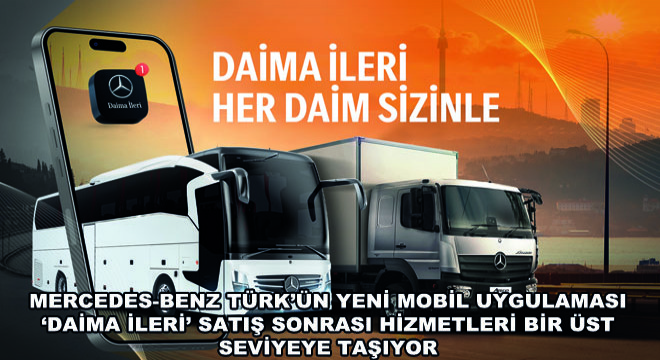Her alanda üstün performans ve kaliteyi garanti eden ürünleri ve servis hizmetleriyle, müşteri memnuniyetini en üst seviyede tutan Mercedes-Benz Türk, hayata geçirdiği yeniliklerle Satış Sonrası Hizmetlerde de fark yaratmaya devam ediyor. Kamyon ve otobüs endüstrisindeki öncülüğünü teknoloji alanına da yansıtmayı hedefleyen Mercedes-Benz Türk; müşterilerinin araçlarının yetkili servislerdeki son durumu hakkında anlık bilgi sahibi olmasına imkân tanıyor. Mercedes-Benz Türk’ün geliştirdiği yeni ‘Daima İleri’ mobil uygulaması, kamyon ve otobüs firması sahiplerinin, satış sonrası hizmetlerden sorumlu olan yöneticilerin ve şoförlerin satış sonrası hizmet deneyimlerini bir üst seviyeye taşıyor.
