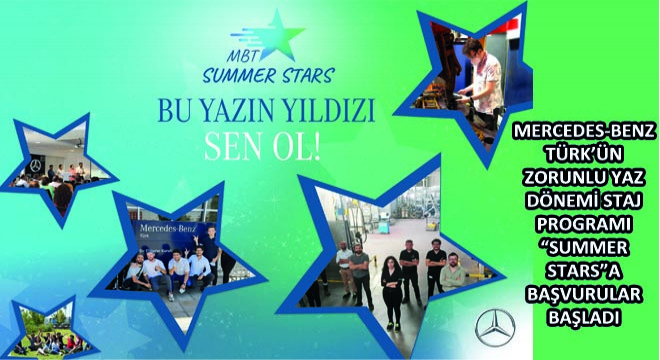 Mercedes-Benz Türk’ün üniversitelerde okuyan gençlerin profesyonel hayata entegrasyonunu sağlamak hedefiyle oluşturduğu zorunlu yaz dönemi staj programı “Summer Stars” için başvurular başladı. Söz konusu program ile stajyerler, Mercedes-Benz Türk çalışanlarıyla gerçekleştirecekleri çalışmalar ve çeşitli eğitimler ile kariyer yolculuklarına yeni bir adım atma fırsatına sahip oluyorlar.