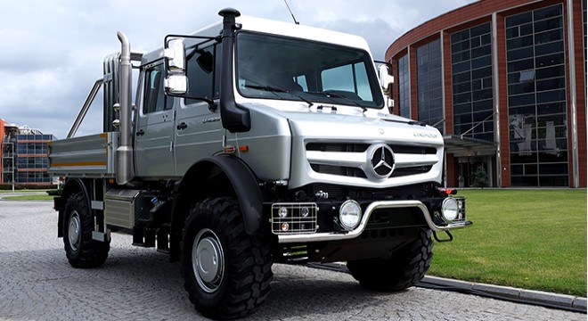 Mercedes-Benz’in Wörth Fabrikası’nda markanın diğer kamyon modelleriyle beraber üretilen Unimog, bu sayede seri üretim Mercedes-Benz kamyonların verimlilik, yüksek kalite güvencesi ve yedek parçaların hızlı temini gibi avantajlarından yararlanıyor. Mercedes-Benz Unimog, dinamizmi vurgulayan radyatör ızgarası ve yeni nesil farları da kapsayan tamponu ile modernleşme sürecini sürdürüyor. Ayrıca, aracın opsiyonları arasına eklenmiş kamera sistemi aracın park edilmesi için büyük kolaylık sağlıyor. Unimog’un sahip olduğu, lastik basınç kontrol sistemi “Tirecontrol Plus” sayesinde, lastik basıncı hareket edilen zemine göre araçtan inmeden kabin içindeki ekrandan “Yol”, “Kum” ve “Çamurlu Arazi” modlarına ayarlanabiliyor. Unimog U 4023’ün alüminyum kasasında 3 ton, Unimog U 5023 modeli ile ise 7,5 ton yük de taşınabiliyor. Ayrıca araçta bulunan römork ön hazırlığı ile istendiği takdirde araca sonradan motosiklet ve bot gibi malzemeleri çekebilmek için römork takılabiliyor.