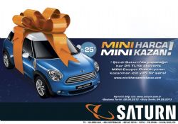 Saturn, 25 TL’lik alışveriş yapan herkese çekiliş kuponu verecek. MINI Cooper Countryman kazanmak isteyenler kuponların üzerindeki kod ile www.minikharcaminikazan.com internet sitesinde yer alan başvuru formunu doldurarak çekilişe katılabilecekler.