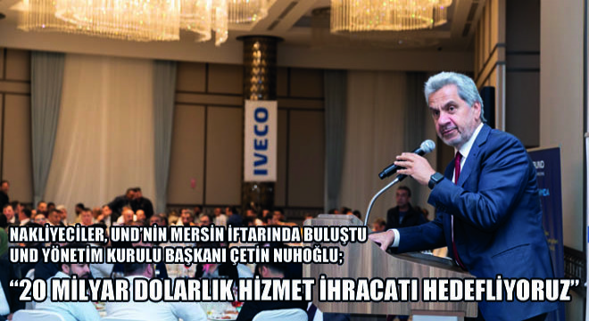 UND iftar yemeği; Iveco Türkiye’nin sponsorluğunda 21 Nisan’da Mersin Divan Otel’de yapıldı. UND Başkanı Çetin Nuhoğlu ev sahipliğinde yapılan buluşmaya; Mersin Büyükşehir Belediye Başkanı Vahap Seçer, Mersin Ticaret ve Sanayi Odası Başkanı Ayhan Kızıltan, Orta Akdeniz Gümrük Müdür Yardımcısı Mehmet Cingöz, Adana Ulaştırma Bölge Müdür Yardımcısı Murat Karahanlı, Mersin Sanayici ve İş insanları Derneği Başkanı Hasan Engin, Türkiye Irak Suriye ve İş İnsanları Derneği Başkanı Mehmet Salih Çelik, Türk Girişim ve İş Dünyası Konfederasyonu Yönetim Kurulu Başkan Yardımcısı Ali Avcı, Iveco Türkiye Genel Müdürü Hakkı Işınak ve çevre illerden çok sayıda nakliyeci katıldı.
