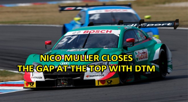 Robin Frijns and Mike Rockenfeller came home second and third to make it an all-Audi podium in Saturday’s DTM race at the Lausitzring. Marco Wittmann (BMW) finished fourth and also made up ground on Rast. He still lies third in the Drivers’ Championship, but now trails Rast by 50 points and Müller by 36. Jake Dennis was the best-placed Aston Martin driver in eleventh.