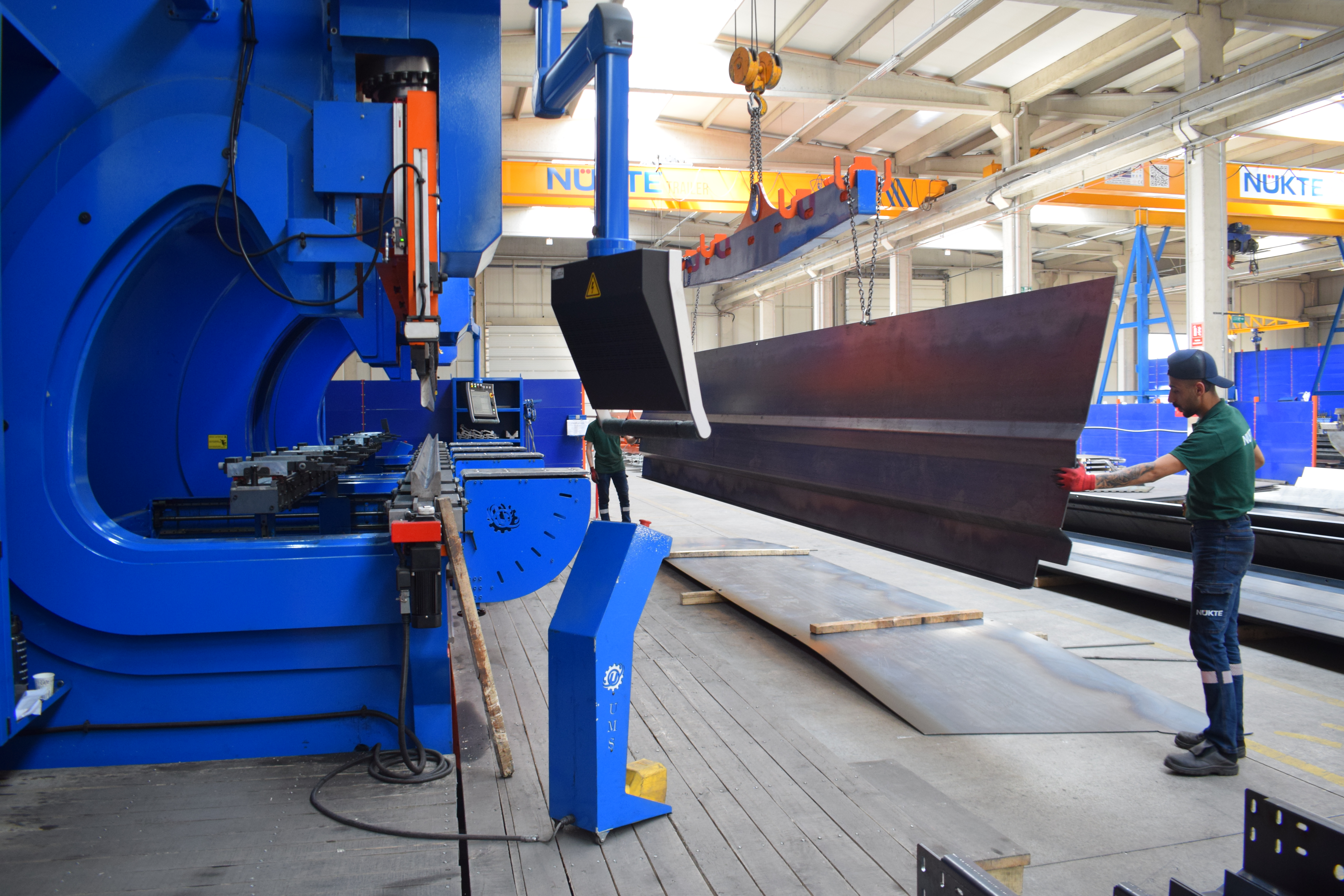 Üretim proseslerini okuyucularımız için aktaran Alım ilk aşama olan plaka sacların lazerde işlendiği bölümü anlatarak sözlerine başladı; “Plaka saclarımız istasyona gelir, yerleştirilir ve lazerde işlenir. Üretim bu aşamadan başlar. Lazerde işlenen saclarımız ise hemen yanında bulunan pres makinesinde bükülerek üretime hazır hale getirilir. Tüm bunların bünyemizde yapılıyor olması bizim için hayati önem taşıyor. Burada bulunan vakum makinesi iş güvenliği açısından çok kıymetli bir makinedir. Plaka sacın vakum şeklinde tutularak daha kolay bir şekilde kaldırılmasını ve çok daha kolay bir şekilde taşınmasını sağlar. Bu vesileyle personelimizin yaşayabileceği herhangi bir iş kazası riski de ortadan kaldırılmış olur. 16 metrelik lazerimiz ile kesim yapıyoruz. Bu bize yekpare ürünler üretme olanağı sağlıyor. 16 metrelik lazer ile uzun saclar kesebildiğimiz için şasilerimizde, teknelerimizde herhangi bir ek yapmak zorunda kalmıyoruz. Yekpare malzemeleri bükebilmek için ise 9 metrelik bir pres makinamız var. Bunun sayesinde 9 metreye kadar olan malzemeleri tek parçada bükebiliyoruz. Bu da bize ek yapmadan üretme olanağı sağlıyor.”