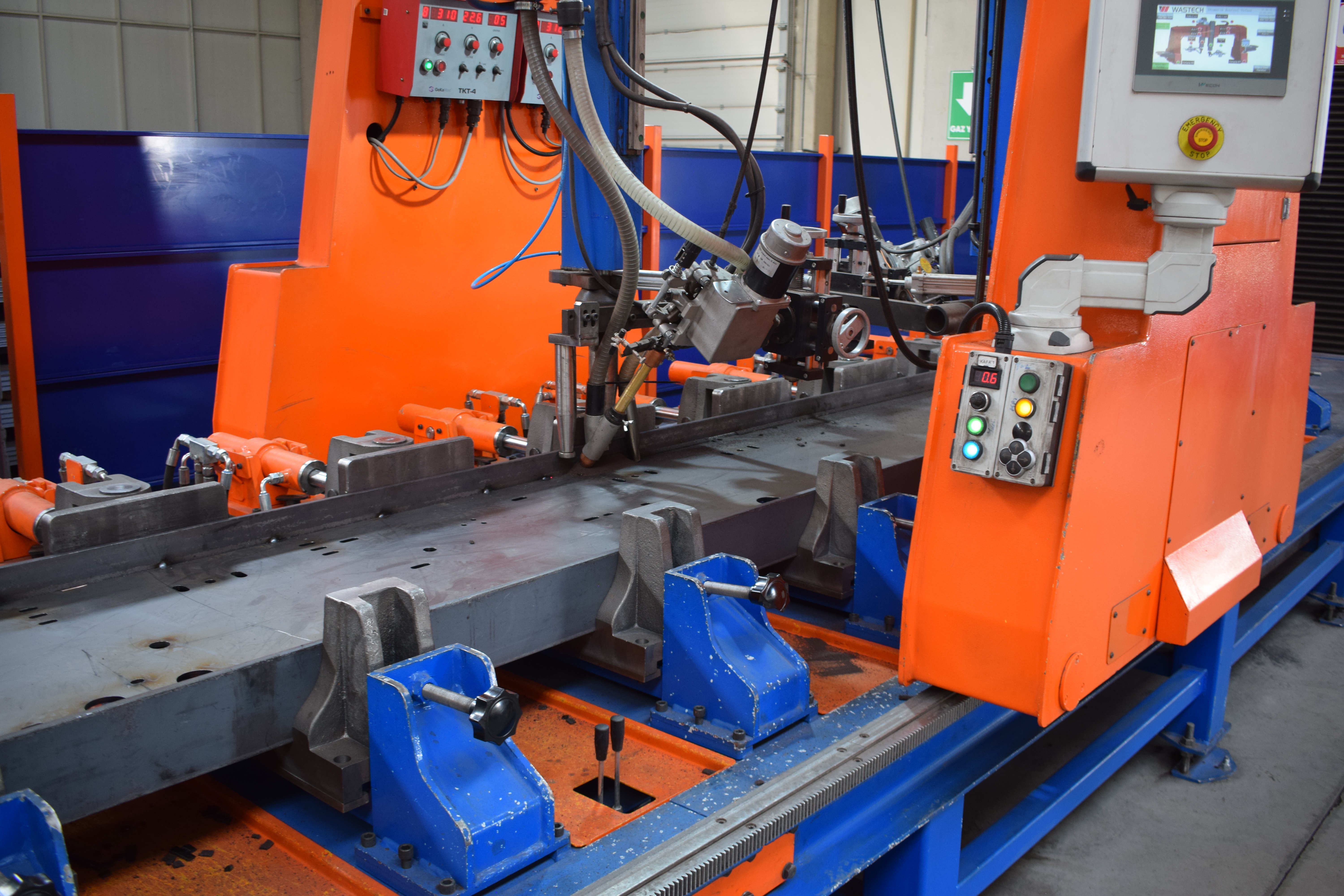 Bir sonraki aşamada malzemenin şasi çatım istasyonuna geçtiğini ifade eden Alım; “Toz altı robotta kaynayan ürünlerimiz burada traversleri ve dingil kulaklarıyla birleşir, kaynağa hazır hale gelir. Kullandığımız Siegmund marka özel çatım sehpaları bizim için çok kritiktir. Kesinlikle kaynak çapağı tutmaz, gönyesi bozulmaz ve terazisi kaçmaz. Bu masada ürün yapmanın avantajı; burada yapılan üründe kesinlikle eğimde bir yanlışlık ya da ölçüsel bir hata bulunmamasıdır.” dedi.