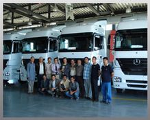 Mercedes-Benz Türk’ten Müşteri Merkezi Teknik Eğitmeni Halil Eryilmaz ve Yaşar Yeşilöz’ün katılımı ile gerçekleşen törende Ömer Yılmaz Taşımacılık adına konuşan Ömer Kutlu, düşük yakıt tüketimi, uzun bakım aralıkları ve kolay bulunabilir uygun fiyatlı orjinal yedek parça hizmeti gibi özelliklerin Axor’u tercih etmelerinin başlıca sebepleri olduğunu ve alımlarının devam edeceğini belirtti.