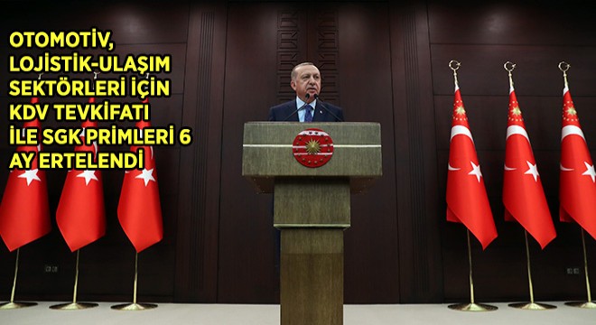 “Perakende, AVM, demir-çelik, otomotiv, lojistik-ulaşım, sinema-tiyatro, konaklama, yiyecek-içecek, tekstil-konfeksiyon ve etkinlik-organizayon sektörleri için muhtasar ve KDV tevkifatı ile SGK primlerinin Nisan, Mayıs ve Haziran ödemelerini 6’şar ay erteliyoruz. Konaklama vergisini Kasım ayına kadar uygulamayacağız. Otel kiralamalarına ilişkin irtifak hakkı bedelleri ve hasılat payı ödemelerini Nisan, Mayıs ve Haziran ayları için 6 ay süreyle erteledik. İç havayolu taşımacılığında 3 ay süreyle KDV oranını yüzde 18’den yüzde bire indiriyoruz. KOVİD-19 salgınıyla ilgili tedbirlerden etkilendiği için nakit akışı bozulan firmaların bankalara olan kredi anapara ve faiz ödemelerini asgari 3 ay öteleyecek ve gerektiğinde bunlara ilave finansman desteği sağlayacağız. İhracattaki geçici yavaşlama sürecinde kapasite kullanım oranlarının korunması amacıyla ihracatçıya stok finansmanı desteği vereceğiz. Bu dönemde işlerinin olumsuz etkilendiğini beyan ederek talepte bulunan esnaf ve sanatkarların Halkbank’a olan kredi borçlarının, Nisan, Mayıs ve Haziran anapara ve faiz ödemelerini 3 ay süreyle ve faizsiz olarak erteleyeceğiz. Kredi Garanti Fonu limitini 25 milyar liradan 50 milyar liraya çıkartacak, kredilerde önceliği gelişmelerden olumsuz etkilendiği için likidite ihtiyacı oluşan ve teminat açığı bulunan firmalar ile KOBİ’lere vereceğiz. Vatandaşlarımız için uygun ve avantajlı şartlarda sosyal amaçlı kredi paketleri devreye alınmasını teşvik edeceğiz. 500 bin liranın altındaki konutlarda kredilendirilebilir miktarını yüzde 80’den yüzde 90’a çıkartacak, asgari peşinatı yüzde 10’a düşüreceğiz. Virüsün yayılmasına karşı alınan tedbirlerin etkisiyle Nisan, Mayıs ve Haziran aylarında temerrüde düşen firmaların kredi siciline “mücbir sebep” notu düşülmesini sağlayacağız. Stopaj gibi kaynağında yapılan kesintilerin ödemelerini içeren muhtasar beyannamelerin sürelerini 3 ay erteliyoruz. Asgari ücret desteğini devam ettireceğiz. Mevzuatımızdaki esnek ve uzaktan çalışma modellerinin daha etkin hale getirilmesini temin edeceğiz. Kısa Çalışma Ödeneğini devreye alacak, bundan faydalanmak için gereken süreçleri kolaylaştırılacak ve hızlandıracağız. Böylece faaliyetine ara veren iş yerlerindeki işçilere geçici bir gelir desteği verirken, işverenlerin de maliyetini azaltmış olacağız. En düşük emekli maaşını bin 500 liraya yükseltiyoruz. Emeklilerin bayram ikramiyesini Nisan ayı başında ödüyoruz. Yine emeklilerimizin maaş promosyon ödemelerinin de, şubelere gitmelerine gerek kalmaksızın, doğrudan hesaplarına yatırılmasını sağlıyoruz. Aile, Çalışma ve Sosyal Politikalar Bakanlığımızın belirlediği kriterlere göre ihtiyaç sahibi ailelere yapılacak nakdi yardımlar için ilave 2 milyar liralık bir kaynak ayırıyoruz. İstihdamdaki sürekliliği temin etmek amacıyla 2 aylık telafi çalışma süresini 4 aya çıkartıyoruz. Küresel tedarik zincirlerindeki aksama ihtimaline karşı hem üretimde, hem de perakende de belirlediğimiz önceliklere göre alternatif kanallar geliştireceğiz. Tek başına yaşayan 80 yaş üstü yaşlılarımız için, sosyal hizmet ve evde sağlık hizmetlerinden oluşan periyodik takip programını devreye alıyoruz. Alınan kararların milletimize ve ekonomimize hayırlı olmasını dilerim."