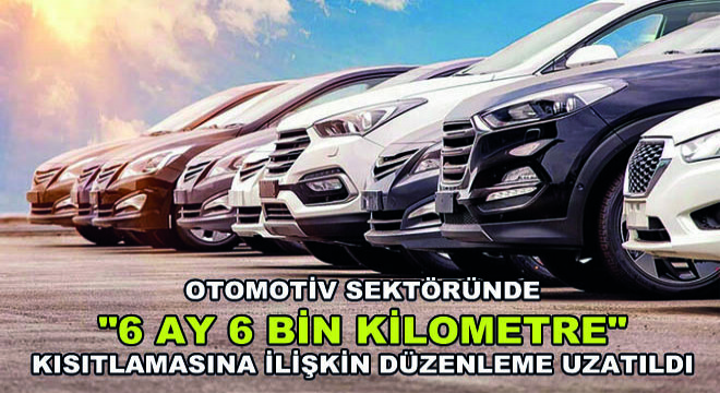 1- Otomotiv sektöründe yaşanan aşırı ve fahiş fiyat artışı, stokçuluk ve bazı haksız ticari uygulamalarla mücadelede fayda sağladığı değerlendirilen "6 Ay 6 bin kilometre" kısıtlamasına ilişkin düzenlemenin uygulama süresi 1 Ocak 2024 tarihine kadar 6 ay süreyle uzatılmıştır.