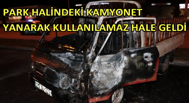Karaman'da park halindeki bir kamyonet yanarak kullanılamaz hale geldi.