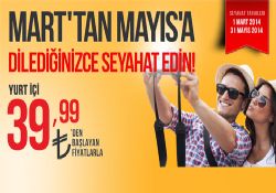 – Uygun fiyatları ve cazip kampanyaları ile misafirlerini uçmanın kolay yolu ile buluşturan Pegasus Hava Yolları, biletlerini 21- 26 Ocak 2014 tarihleri arasında alan misafirlerini 1 Mart – 31 Mayıs 2014 tarihleri arasında seçili yurt içi hatlarına 39,99 TL’den başlayan fiyatlarla uçuruyor.