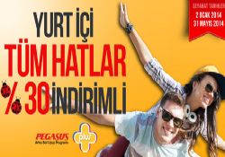 Uç Uç Günleri” kapsamında biletlerini 05- 06 Aralık tarihlerinde alan Pegasus Plus’lılar, 02 Ocak – 31 Mayıs 2014 tarihlerinde Pegasus’un yurt içi uçuş ağında bulunan 31 noktaya toplam ücret üzerinden %30 indirimle uçuyor.