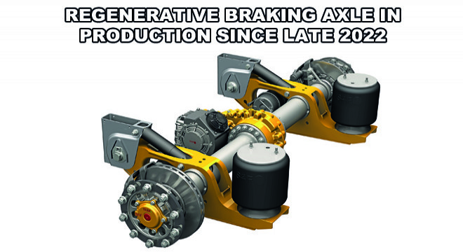 The SAF TRAKr trailer axle uses regenerative braking to reduce the emissions and fuel consumption of the whole tractor-trailer combination. To do this, the centrally positioned high-voltage generator unit converts the kinetic energy of the trailer into electrical energy. The generated energy is stored in a Li-ion battery and then used to run the electrical units in the trailer, such as refrigeration units or pumps, on electricity alone.