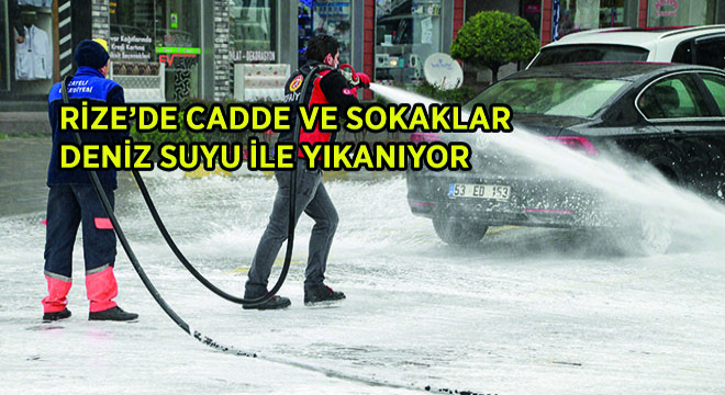Çayeli ilçesinde belediye tarafından yürütülen çalışmalarda cadde ve sokakların yıkanması için deniz suyu kullanılıyor. Vatandaşların işlek olduğu bölgeleri, itfaiye ve temizlik işleri müdürlüğüne bağlı personeller titizlikle yıkıyor.