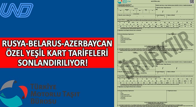 Bu gelişme neticesinde, 30.06.2023 tarihinden itibaren düzenlenecek tüm Yeşil Kartlarda RUS ve BY kutucuklarının üzeri kapatılıp Rusya ve Belarus’a teminat verilmeyeceği ve bu uygulamanın bir sonucu olarak da 30.06.2023 tarihinden itibaren Rusya-Belarus-Azerbaycan özel Yeşil Kart Tarifelerinin sonlandırılacağı bildirilmiştir.