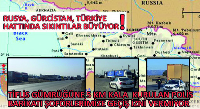Öte yandan Rusya Gürcistan sınırı Viladikavkaz’da bekleyen Türk araçlarına, Tiflis ve Haşuri’de bekleyen Türk araçları eklendi. Özellikle Tiflis gümrüğüne 5 km kala kurulan polis barikatı ile Türk şoförlerin Sarp sınır kapısını değil de diğer kapıları kullanma taahhüdünde bulunması geçişleri için şart koşuluyor.