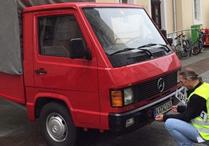 Eski model Mercedes marka kırmızı kamyoneti kendine has üslubuyla yorumlayan sanatçının eseri, kentin park edilmesi yasak bölgesine yerleştirildiği için 30 euro (85 TL) cezaya çarptırıldı.