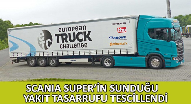 Bu yıl 450 hp'ye kadar güce ve 2.200 ila 2.400 Nm aralığında torka sahip uzun yol çekicilerinin katıldığı karşılaştırma testinde Scania Super, ikinci sırada yer alan rakibine göre yüzde 4,9daha fazla yakıt tasarrufu sağladı. Testteki kamyon ve treyler kombinasyonlarının ortalama brüt ağırlığı ise 33,6 tondu.