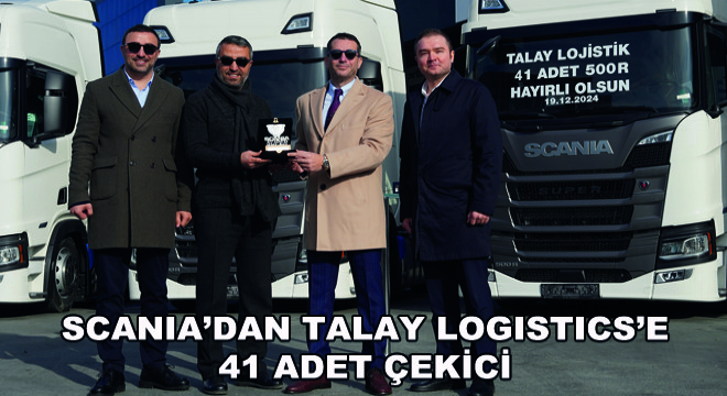 Teslimat törenine; Talay Logistics CEO’su Onur Talay, UCR Otomotiv firma sahipleri Ertuğrul Uçar, Mehmet Ali Uçar, Scania Pazarlama Müdürü Ömer Madazlıoğlu, Scania Pazarlama Yöneticisi Özge Akyıldız Yakan, Scania Bölge Satış Yöneticisi Tayfun Yılmaz katıldı.