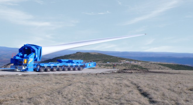 Vehicles from SCHEUERLE are frequently used when facilities are constructed for the purpose of producing renewable energy. For this, in particular, SCHEUERLE has developed special trailers and equipment in order to handle the transport of components of such systems as efficiently, climate-friendly and environmentally compatible as possible. The new Rotor Blade Transport System (RBTS) product, which can also be used to transport rotor blades with lengths of more than 70 metres for wind power plants, is just one example of this.