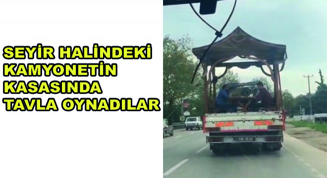 İlginç görüntü yakın çevre yolunda yaşandı. Bir vatandaş kamyonetin kasasındaki kişileri görüntüledi. Kamyonetin kasasında piknik masasını görenler, bir kez daha dönüp baktığında gözlerine inanamadı. Yolda ilerleyen kamyonetin kasasındaki piknik masasında karşılıklı 2 kişinin oturduğu dikkatlerden kaçmadı. Her şey buraya kadar normal görünse de, o iki kişinin tavla oynaması "bu kadarına da pes" dedirtti.