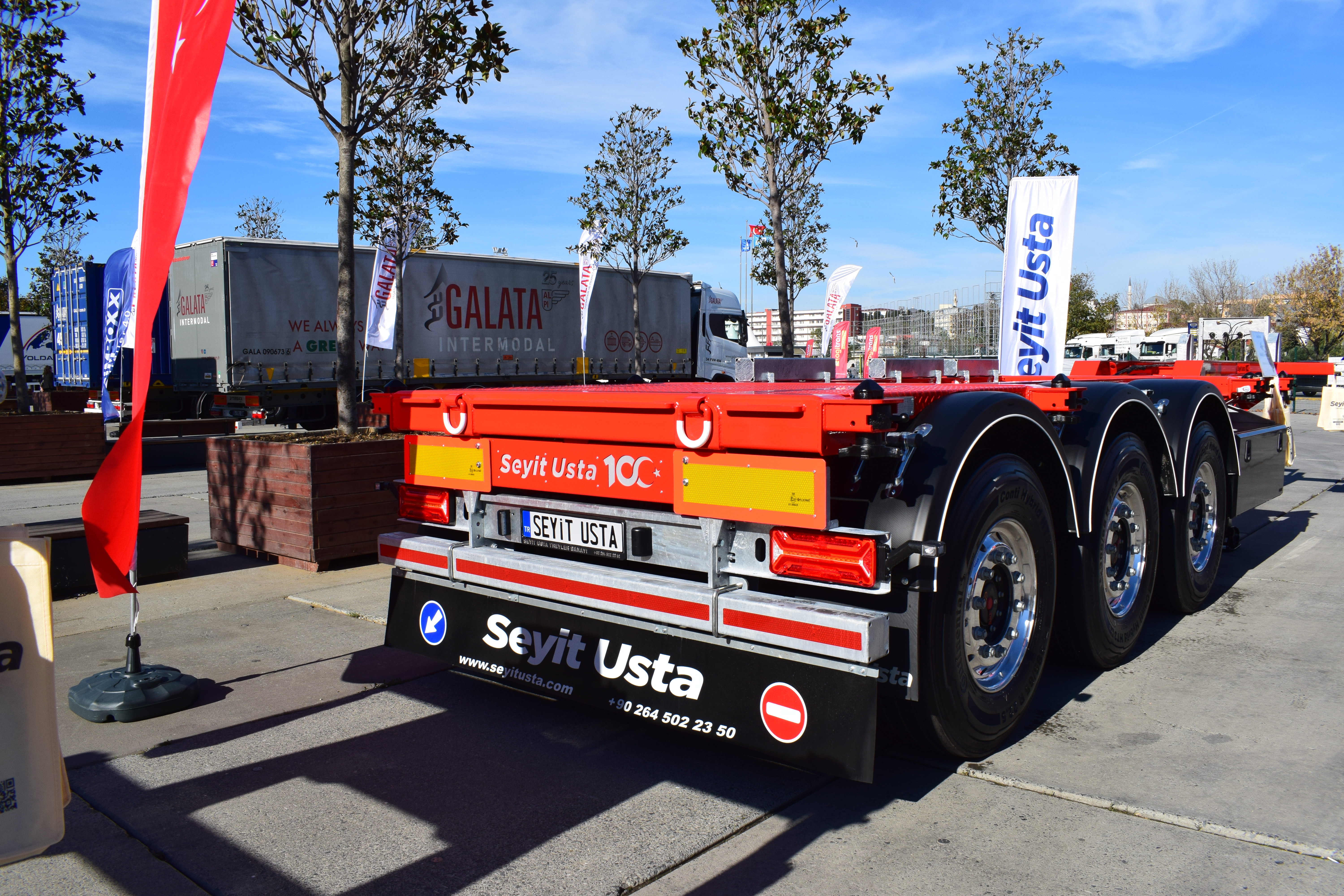 Son olarak ise sergiledikleri 40’lık teleskopik konteyner taşıyıcılarını okuyucularımız için detaylandıran Arslan; “Bu, Türkiye içerisinde en çok tercih edilen ürünümüz. İhracatta da en çok tercih edilen ürünlerimizden bir tanesi. Çok uzun bir süredir ürettiğimiz bu ürün, İstanbul Ambarlı Limanı’nda da en çok tercih edilen ürün. En büyük avantajlarından bir tanesi; 20’lik, çift 20’lik, 40’lık olmak üzere birçok opsiyonda taşıma yeteneğine sahip olması. Çok dayanıklı ve uzun süreler hizmet edebilecek şekilde tasarlandı. Piyasada da Seyit Usta markasıyla gördüğünüz araçların yüzde 90’ı bu üründür. Ayrıca bu ürünümüzü Cumhuriyetimizin 100. yılı dolayısıyla kırmızıya boyadık ve diğer araçlarımızda olduğu gibi 100. yıl logosunu taktık.” dedi.