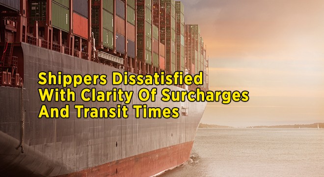Customer satisfaction was reported least favourable for clarity of prices and surcharges, transit times, and reliability of booking/cargo shipped as booked scoring between 2.8 and 3 (see chart).