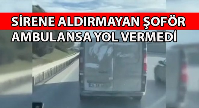 Başakşehir'de bugün saat 11.00 sıralarında 03 güney yan yolu bağlantı noktasında seyir halindeki araç sürücüsü, ambulansa dakikalarca yol vermedi. Vakaya giden ambulans şoförünün ısrarla siren çalmasına aldırış etmeyen sürücü, cep telefonu kamerası ile görüntülendi.
