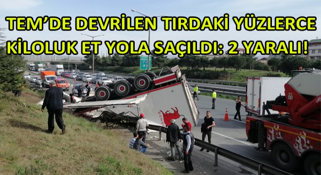 Kaza, Kocaeli’nin Körfez ilçesi TEM Otoyolu’nda meydana geldi. Edinilen bilgilere göre, İstanbul istikametinde seyir halinde olan Murat C. idaresindeki 42 YS 597 plakalı et yüklü tır, sürücüsünün direksiyon hakimiyetini kaybetmesi sonucunda devrildi. Kazada tırda bulunan sürücü Murat C. ve Mehmet Can M. yaralanırken, dorsede bulunan yüzlerce kiloluk et yola saçıldı. Kazayı gören çevredeki vatandaşlar durumu hemen 112 Acil Yardım ekiplerine bildirdi. İhbar üzerine olay yerine itfaiye, polis ve sağlık ekipleri sevk edildi.