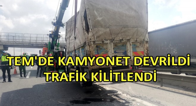 Tem otoyolunda lastiği patlayan kamyonet devrildi. Devrilen kamyonet nedeniyle trafik, Mahmutbey gişeler istikametinde durma noktasına geldi.