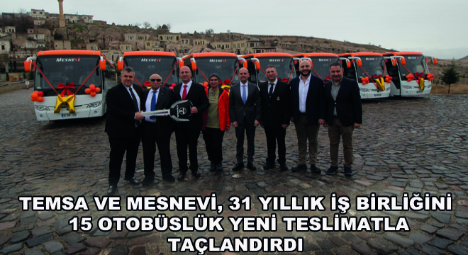 Türkiye’de yatırımlarını sürdüren iki köklü kurum, TEMSA ve Mesnevi Turizm, 31 yıllık iş ortaklıklarını yeni bir araç teslimatıyla güçlendirdi. Son dönemde Türk turizm sektörüne yönelik en büyük sıfır araç teslimatlarından biri olarak dikkat çeken iş birliği kapsamında, TEMSA’nın Adana’daki tesislerinde üretilen Maraton model 15 yeni nesil otobüs Mesnevi Turizm’in kullanımına sunuldu. Kapadokya’da, Mesnevi Turizm Yönetim Kurulu Başkanı Mustafa Mesnevi, TEMSA Satış Genel Müdür Yardımcısı Hakan Koralp, TEMSA Yurtiçi Satış Direktörü Baybars Dağ ve iki şirketin yönetim ekiplerinin katılımıyla gerçekleştirilen teslimat töreniyle birlikte, Mesnevi Turizm’in filosundaki TEMSA markalı araç sayısı da 40’a yükselmiş oldu.