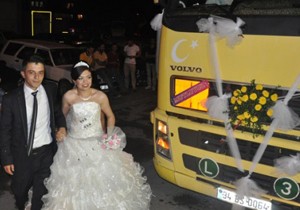 Hafızalarda farklı bir hatıra olarak kalması için böyle bir şey düşündüğünü ifade eden damat Selim Yemenicioğlu, “Mesleğim nakliyecilik olduğu için böyle bir şey yapmak istedim. Patronlarıma söyledim, sağ olsunlar beni kırmadılar.