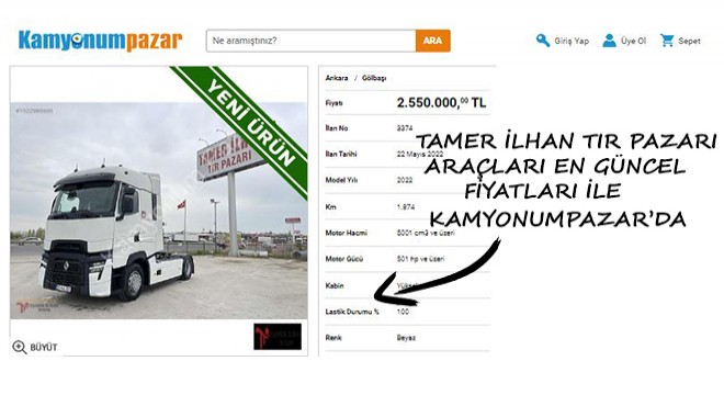 Tamer İlhan Tır Pazarı'nın güncel fiyatlı yeni ilanları için www.kamyonumpazar.com adresine tıkla, yeni ilanlardan ve güncel fiyatlardan haberdar ol!