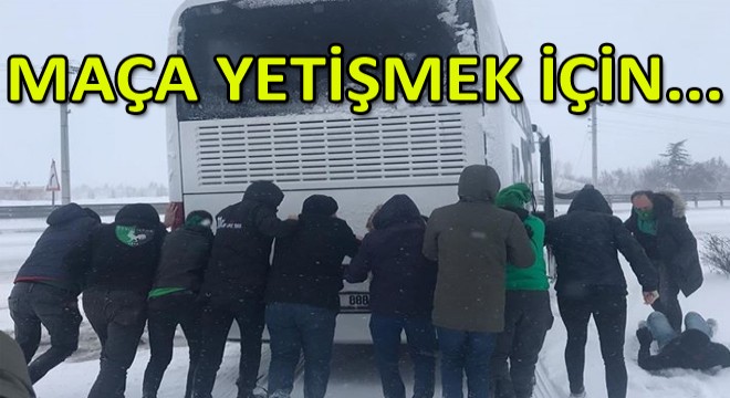 Denizlispor'un 'Yeşil Cephe' taraftar grubunu taşıyan otobüs, yoğun hava muhalefeti nedeniyle Alaşehir’de kardan dolayı yolda kaldı. Kar birikintisine saplanan otobüs taraftarların otobüsü ittirmesiyle yoluna devam edebildi. Taraftar grubu maça yetişmek amacıyla soğuk ve yağışlı havaya aldırmadan otobüsü çıkarmak için yoğun çaba gösterdi.