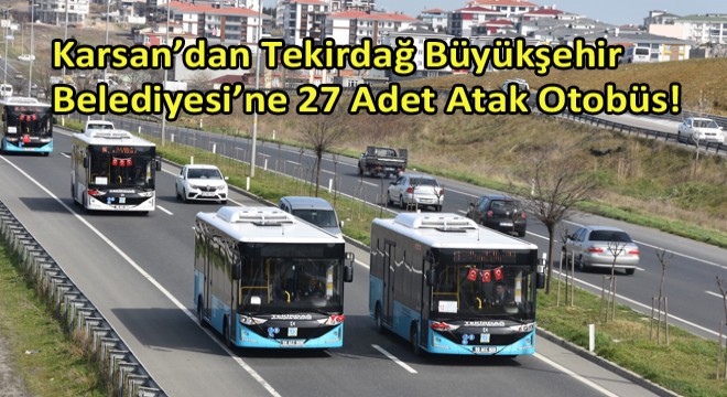 Geliştirdiği toplu taşıma sistemleriyle şehirlere modern çözümler sunan yerli üretici Karsan, Tekirdağ Büyükşehir Belediyesi’ne 27 adet Atak otobüs teslim etti. Belediyenin Fen İşleri Dairesi Başkanlığı'nda gerçekleştirilen teslimat törenine Tekirdağ Büyükşehir Belediye Başkanı Kadir Albayrak, Belediye Genel Sekreter Fatih Ünsal, Ulaşım Daire Başkanı Erdin Eral, Karsan Satış Müdürü Adem Ali Metin, Bölge Satış Yöneticisi Celal Yalnız, Satış Sonrası Hizmetler Bölge Yöneticisi Kemal Sibilik ve belediye çalışanları katılım gösterdi. Tekirdağ Büyükşehir Belediye Başkanı Kadir Albayrak, törendeki konuşmasında Tekirdağ’ın Süleymanpaşa ilçesi sakinleri için konforlu, engelli uyumlu ve güvenilir bir marka tercih ettiklerini vurguladı.