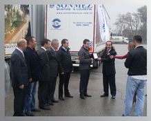 Teslimat törenine Sönmez Holding Yönetim Kurulu Üyeleri Ali Cem Sönmez, Cemil Sönmez ile birlikte, Sönmez Holding Ceo’su Hayati Çekiç, Sönmez Bustaş Uluslararası Nakliyat Genel Müdürü Fahrettin Arabacı, Bursa Ağır Vasıta Ltd. Şti. adına Şirket Koordinatörü Ahmet Uğur ve ekibi katıldı.