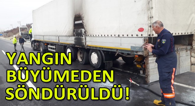 Dinar Karakaya idaresindeki, Malatya’dan Eskişehir’e kuru kayısı yükü götüren tırda, seyir halindeyken yangın çıktı. Lastiğin top atması sonucu meydana gelen yangın, Balaban’da bulunan itfaiye ekiplerinin hızlı müdahalesiyle fazla büyümeden söndürüldü.