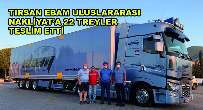 Güvenilir lider Tırsan, müşterilerinin ihtiyaçları doğrultusunda geliştirdiği en geniş ürün gamıyla lojistik firmalarının ilk tercihi olmaya devam ediyor. Türkiye ile Avrupa arası taşımacılık yapan İzmir’in önde gelen firmalarından Ebam Uluslararası Nakliyat, filosuna 21 adet Tırsan Multi Ride, 1 adet Talson TGG Tekstil Taşıyıcı treyler ekledi. Ebam Uluslararası Nakliyat’ın İzmir tesislerinde gerçekleşen teslimat törenine; Ebam Uluslararası Nakliyat Yönetim Kurulu Başkanı Ahmet Mutlubaş, Filo Müdürü Ertan Sağnak ve Tırsan Treyler Satış Koordinatörü Ertuğrul Erkoç katıldı.