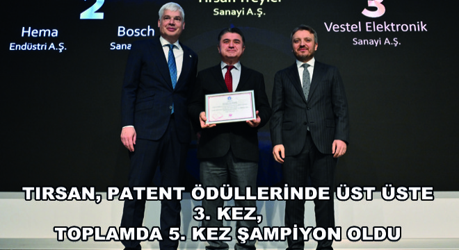 Türkiye otomotiv tedarik sanayinin çatı kuruluşu Taşıt Araçları Tedarik Sanayicileri Derneği’nin (TAYSAD) 46. Olağan Genel Kurul toplantısı düzenlendi. Olağan Genel Kurul Toplantısı çerçevesinde gerçekleştirilen Başarı Ödülleri Töreni’nde Tırsan, uzman ekiplerinin ürettiği 64 patent ile bir kere daha 1.lik ödülüne layık görüldü.