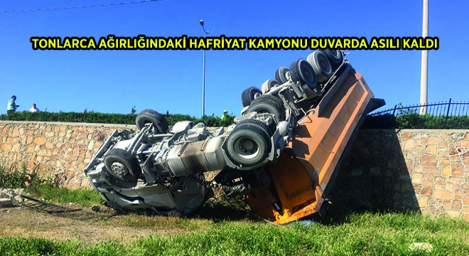 Kaza, Pamukkale ilçesi Akhan Mahallesi'nde meydana geldi. Muammer T. idaresindeki 06 DS 2498 plakalı hafriyat kamyonu, Cafer Sadık Abalıoğlu Bulvarı'nda sürücünün direksiyon hakimiyetini kaybetmesi sonucu kontrolden çıkarak yol kenarındaki demir bariyerleri yıkıp istinat duvarından peyzaj alanına düştü. Kazayı gören çevredeki vatandaşlar, 112 Acil Çağrı Merkezi'ni arayarak yardım istedi. İhbar üzerine bölgeye polis, itfaiye ve sağlık ekipleri sevk edildi. Olay yerine gelen ekipler yaralanan kamyon sürücüsünü araçtan çıkararak, ambulans ile hastaneye kaldırdı. Ters dönen kamyonun yakıt deposundan sızan motorinin herhangi bir olumsuzluğa yol açmaması için ise itfaiye ekipleri tarafından güvenlik önlemi alındı. Kamyonun duvar ile düştüğü yer arasında asılı kalması ilginç bir görüntü oluşturdu.