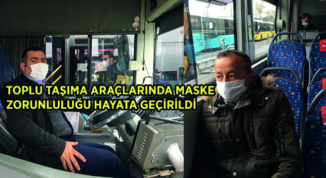len kısıtlamalar da artırılıyor. Kısıtlamalar kapsamında otobüs, metro, metrobüs ve şehir hatları vapurlarında maske takma zorunluluğunun getirildiği, aksi takdirde yolcuların alınmayacağını duyuruldu. Kararın ardından otobüslerin camına vatandaşları uyarmak üzerinde “Korona virüs önlemleri kapsamında Cumhurbaşkanlığınca açıklanan karar gereği toplu taşıma araçlarında maske takma zorunluluğu getirilmiştir. Lütfen toplum sağlığı için kurallara uyalım” yazılı kağıtlar asıldı. Bazı vatandaşların maske ile otobüslere bindiği görülürken, bazılarının ise yasağa rağmen maske takmadığı görüldü. Maske takmayan yolculara otobüs şoförleri tarafından ücretsiz maske dağıtıldı.
