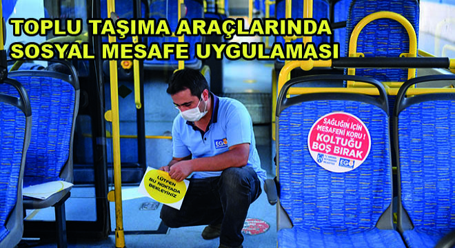 EGO Genel Müdürlüğü, koronavirüs salgınının bulaşma riskini azaltmak amacıyla ek önlemler alırken, sosyal mesafenin korunmasını sağlamak için vatandaşların en az 1 metre kuralına uyması için EGO’ya ait toplu taşıma araçlarına zemin yapıştırmaları (sticker) yerleştirmeye başladı.