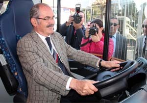 “Bugün teslim aldığımız ve birkaç gün içinde hizmete girecek olan otobüslerimiz ÇEVRE DOSTU EURO 5 otomatik şanzımanlı, güvenli ve klimalı. Ayrıca, belki de en önemli özelliği, engelli hemşerilerimiz için kullanımları son derece kolay. İniş binişlerde özel rampaları sayesinde aynen tramvaydaki gibi rahatça kullanılabiliyorlar. Birazdan incelerken de göreceğiz, otobüslerin içlerinde de yine aynen tramvaylarda olduğu gibi engelli hemşerilerimiz için özel bölümler bulunuyor”