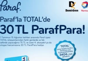 TOTAL, Halkbank işbirliği ile 1 Temmuz – 15 Ağustos 2016 tarihleri arasında Paraf üyesi TOTAL istasyonlarında geçerli olmak üzere 30 TL ParafPara Kampanyası’nı başlattı.
