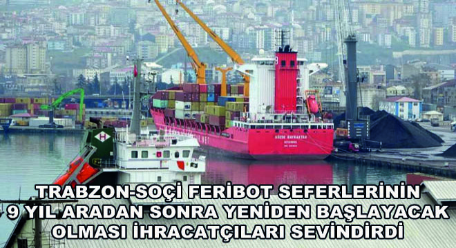 Trabzon'dan 1992-2008 yılları arasında yoğun olarak yapılan, 2008 yılından sonra getirilen kısıtlama ve 2010 yılından itibaren de deniz yolculuğuna ilginin azalması ile 2014 yılında tamamen kaldırılan Trabzon-Soçi feribot seferleri 1 Mayıs 2023 tarihinde yeniden başlıyor.