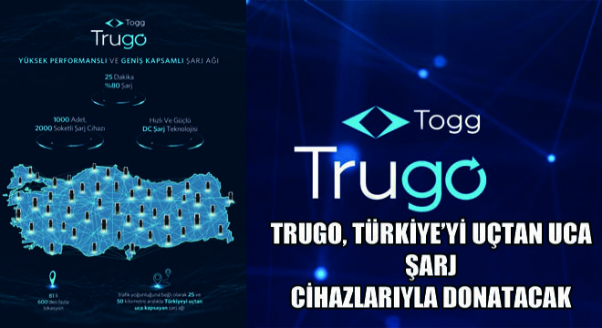 Togg CEO’su M. Gürcan Karakaş, Türkiye’de ihtiyaç duyulan şarj altyapısı için kurdukları Togg Akıllı ve Hızlı Şarj Çözümleri A.Ş.’nin, ‘Trugo’ markasıyla 81 ilde 180 kWs üzeri cihazlarla tüm elektrikli araç kullanıcılarına kesintisiz bir deneyim sunacağını belirterek, şunları söyledi: “Ülkemizde uçtan uca elektrikli araçlarla seyahat etmeyi mümkün kılacak hızlı şarj istasyonları kurma hedefimiz doğrultusunda EPDK’ya yaptığımız başvuru sonuçlandı. Sektörün lisanslı oyuncuları arasında yer almaktan büyük mutluluk duyuyoruz. Bu regülasyonun Türkiye’nin şarj altyapısının gelişimi için çok kıymetli bir mihenk taşı olduğunu düşünüyoruz. Önümüzdeki yıl ortasına kadar 81 ilimizde 600’ün üzerinde noktada, toplam 2 bin soketi olan 1000 adet hızlı şarj cihazının kurulumunu yapacağız. Bu öncü pozisyonumuzu önümüzdeki yıllarda yapacağımız yatırımlarla da sürdürmeye kararlıyız. Hedefimize giden yolda geri sayım başladı. Homologasyon sürecinin tamamlanmasının ardından 2023 yılının ilk çeyreğinde ilk akıllı cihazımız C-SUV pazara çıkacak.”