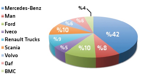 Köprü niteliğiyle Avrupa ve Asya’yı birbirine bağlayan; sanayi, ticaret, tarım ve turizmin oldukça geliştiği bir bölge olan Marmara Bölgesi’nde faaliyette olan ve ulaşılabilen firma ve kooperatiflerle yaptığımız görüşmeler sonucunda, %46.70’lik bir oranla Mercedes, Marmara Bölgesinin en çok tercih edilen markası olma unvanını kazandı. Mercedes’i %11’lik bir oranla Ford Trucks takip ederken, üçüncü sıraya ise %8.9’luk bir oranla Volvo geldi.