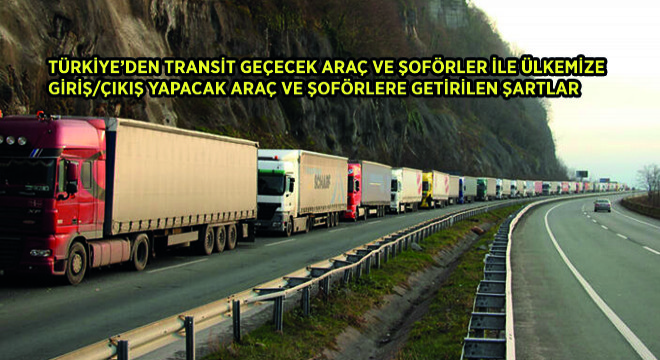 Uluslararası ticaret amacıyla İran ve Irak Sınır Kapılarından giriş-çıkışlar hariç olmak üzere (anılan kapılardan geri alınmamak kaydıyla sadece yabancı uyruklu tır şoförleri çıkış yapabilecektir) ülkemizden transit geçecek araç ve şoförler ile ülkemize giriş/çıkış yapacak araç ve şoförlere aşağıda belirtilen şartların sağlanması halinde geçiş izni verilecektir.