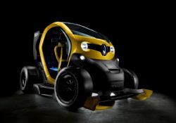 Twizy Renault Sport F1 tek kişilik yarış aracının lastiklerine sahip. Yan rotlar, bir arka kanat, difüzör ve F1 tarzı yağmur farına sahip.